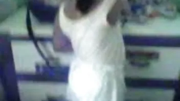 அவளது கண்கள் முன் பக்கவாட்டில் நின்று, காம உணர்ச்சியுள்ள மனைவி தன் கணவரின் முன் ஒரு அதிர்வுறையுடன் தன்னைத் தானே சுத்தப்படுத்துகிறாள்